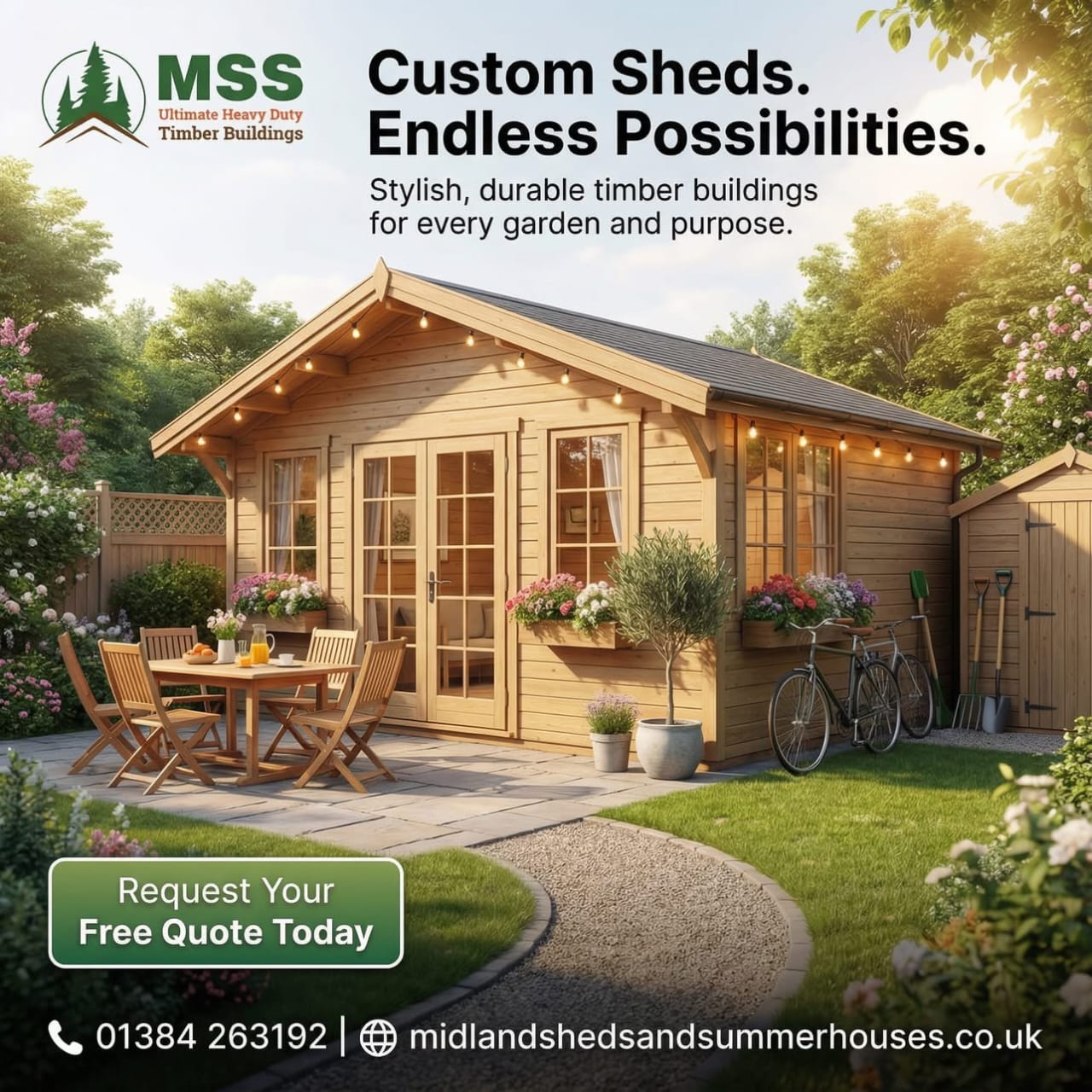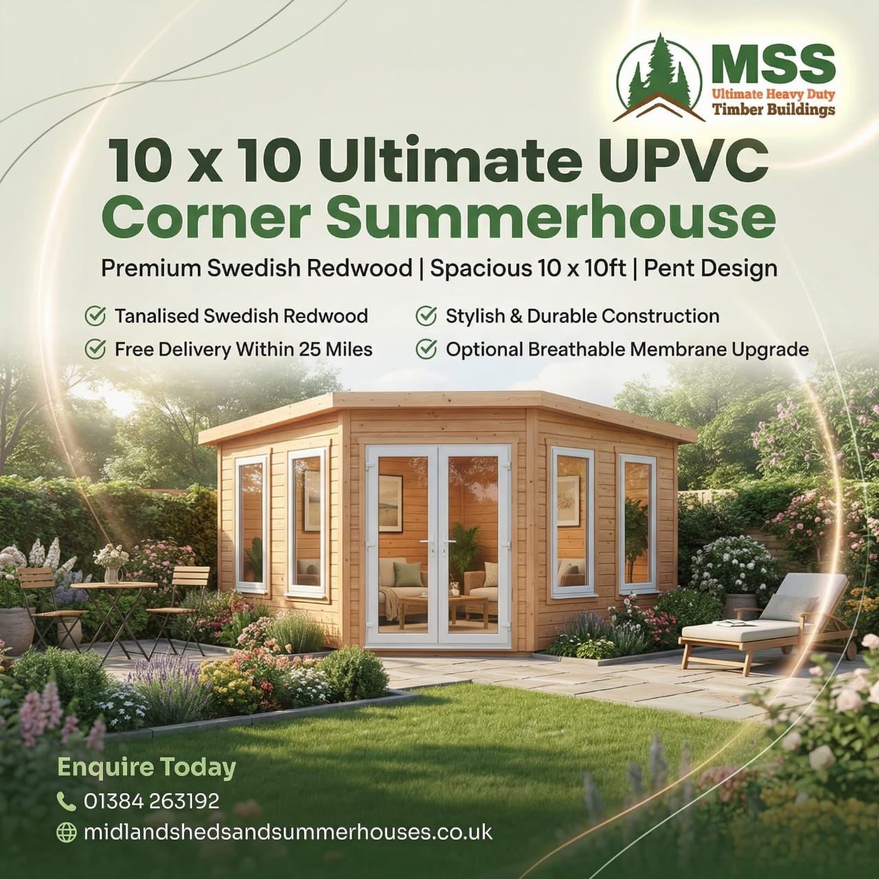 We Design & Build Unique Beautifully Finished Summer Houses, Garden Offices, Workshops, Garden Sheds, Security Sheds and Garden Studios built in the UK.